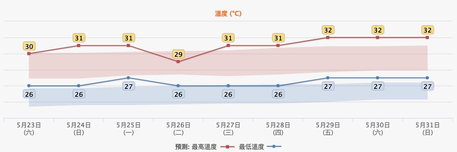 氣溫稍稍降為介乎26至32度。