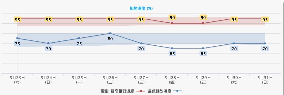 相對濕度65%至95%。