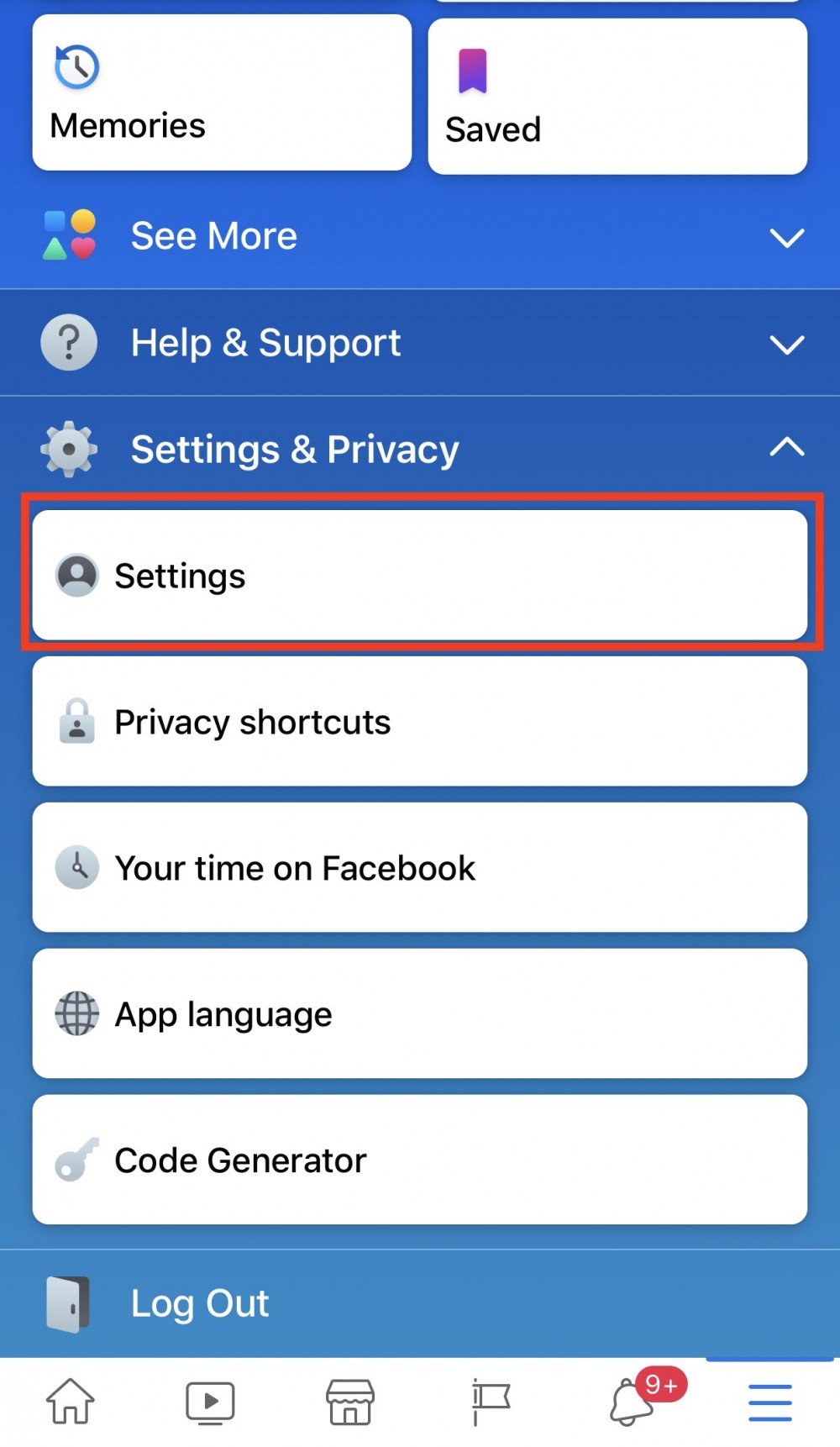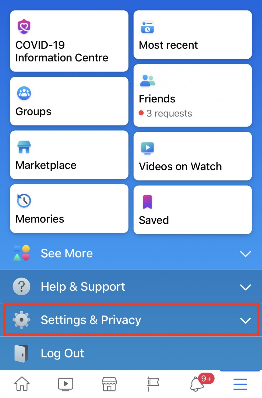 1. 打開 Facebook App,點右下角嘅個人中心,喺「設定和私隱」撳「設定」。