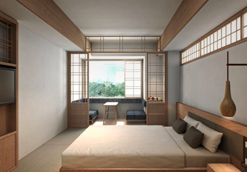 酒店房間採用木系傢私為主,充滿和式風格。
