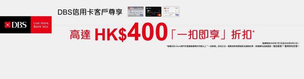 即日至2020年12月31日,憑銀聯卡於網上商店簽賬滿 HK$349 並輸入優惠碼,可享HK$50折扣優惠。