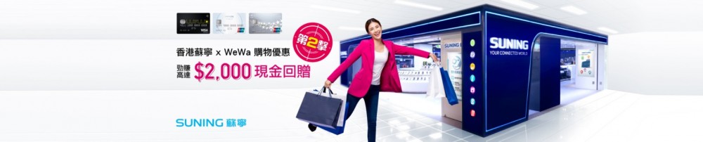 成功透過 OmyCard 手機 App 登記並憑安信信用卡(WeWa)於香港任何香港蘇寧分店或網店 hksuning.com 單一簽賬滿指定金額可享高達HK$2,000 現金回贈