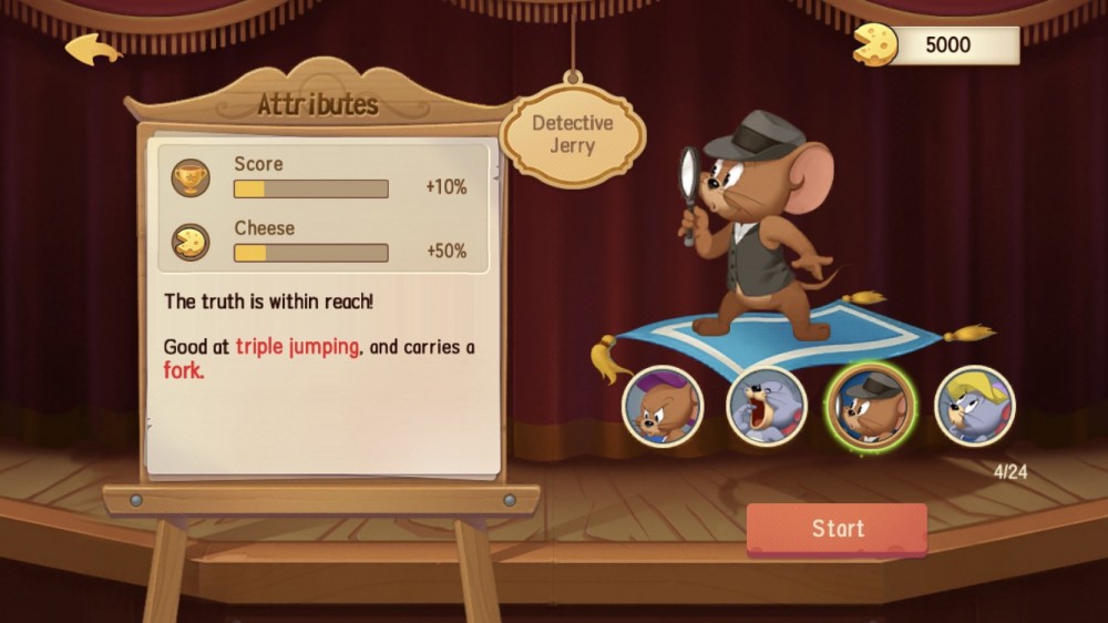 在遊戲當中,玩家可以隨意挑選 Tom 或 Jerry,進行偷芝士或捉老鼠挑戰。選好角色後,遊戲會自動連線進行8分鐘的4隻 Jerry 決戰1隻 Tom 的大對決,大家當然也可以與朋友一同連機參與!