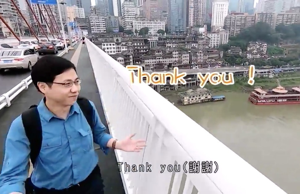 「呢個幾星期喺重慶行咗好多橋,告別『橋都』,送返條橋畀幫過我哋嘅重慶朋友,『Thank You』」