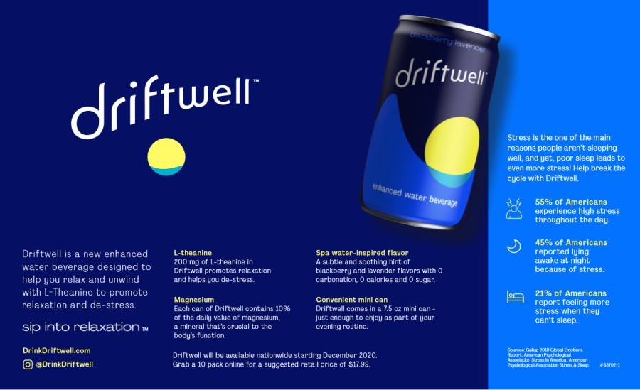 呢款名為「Driftwell」嘅助眠飲品係由「Drift off」同「Well」縮寫而成,希望大家飲完都可以好好地咁瞓一覺~
