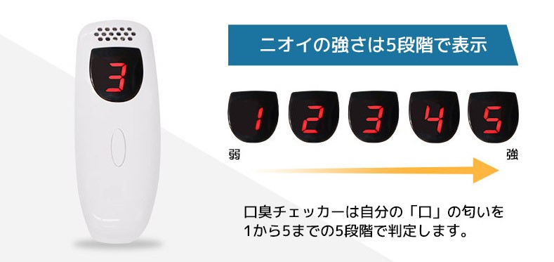 口氣檢測機用等級 1 至 5 去量化口氣數值,1 為最低,啫係無咩口氣,而 5 就係最高,啫係口氣問題好嚴重,需要正視一下!