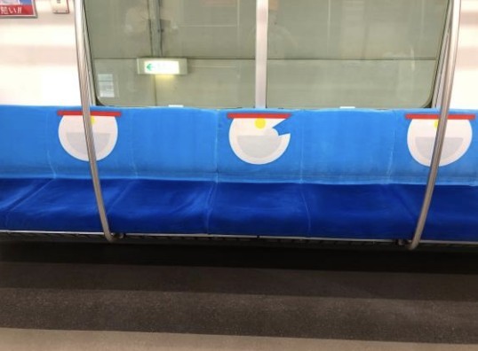 藍色嘅座位上面印有百寶袋,就好似坐喺多啦 A 夢大脾上面咁~