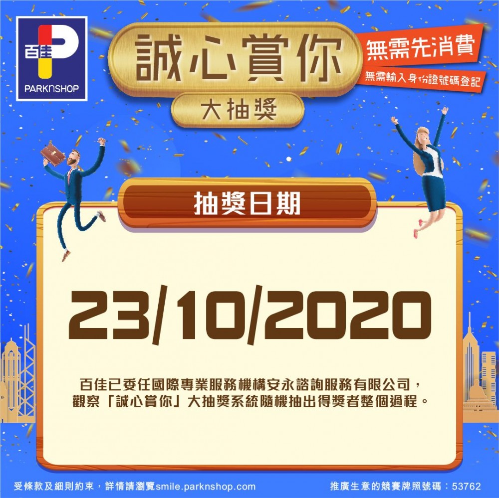 「機會嚟啦!飛雲!」~即日起百佳超市推出「誠心賞你」大抽獎,大家只要喺 10 月 12 日下午1 點起至 10 月 18 日以電話或上網就可以登記,而且所需資料簡單就可以參加,獎品包括 $100 超市現金劵、一分鐘免費掃貨、獨家禮品套裝,名額一共32萬個。仲唔把握機會申請!