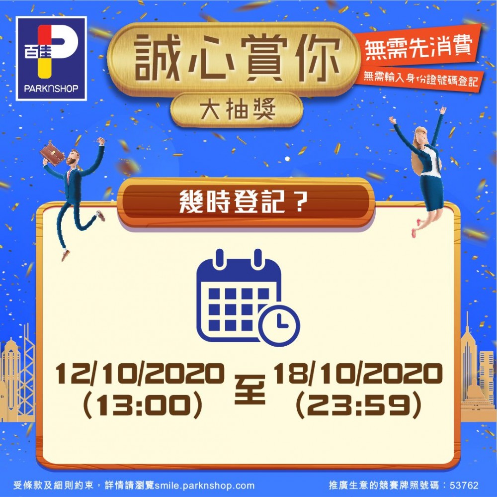 參加者須於 2020 年 10 月 12 日下午 1 時正至 2020 年 10 月 18 日晚上 11 時 59 分前完成登記