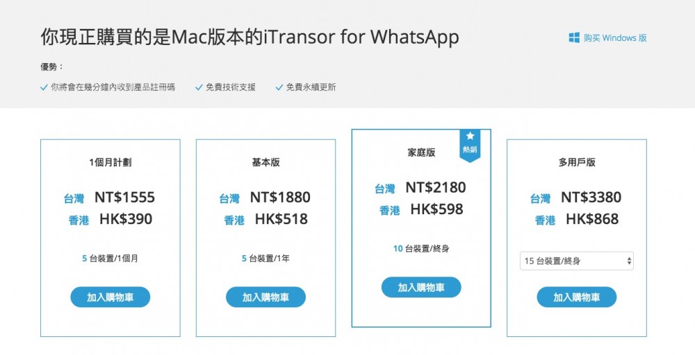 至於價錢方面,最平大家可以買一個月,可供 5 台裝置使用。