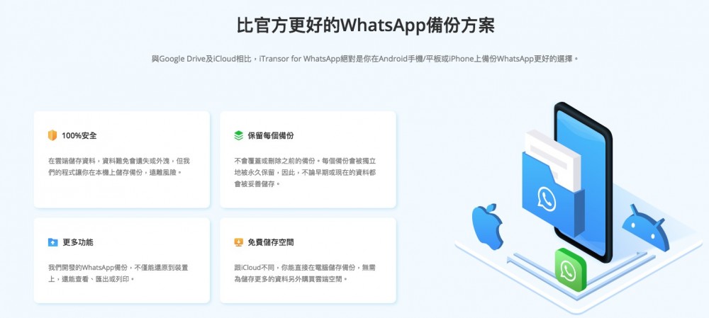 目前試過最方便嘅一個付費應用程式就係 iTransor for WhatsApp,依個程式主要可以方便大家用多種方式管理 WhatsApp 嘅訊息同資料,包括直接將 WhatsApp 資料從 iPhone 傳輸到 Android,或者 Android 傳輸到 iPhone。