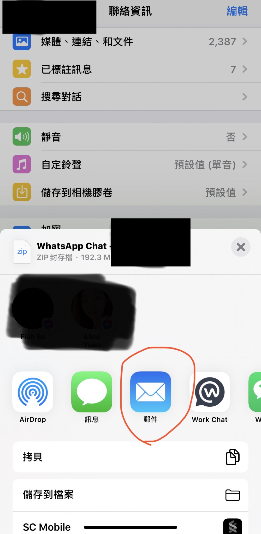 使用電子郵件聊天將WhatsApp聊天記錄