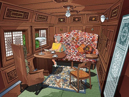列車內部設計走復古豪華路線,結合日本同西洋風格,加入咗九州各地元素,包廂提供明亮開放嘅空間。JR 九州今次係首次喺車廂內使用榻榻米,乘客需要除鞋先可使用空間,呢個都係列車嘅一大特色。