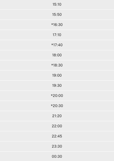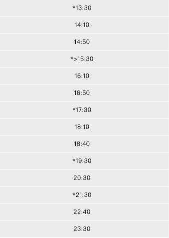 上列時間閘機將會關閉 (船票提早售罄除外)