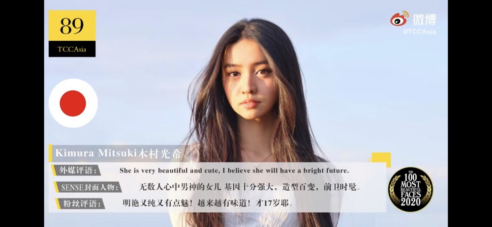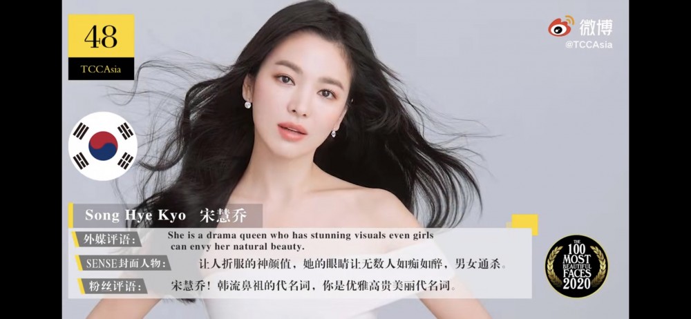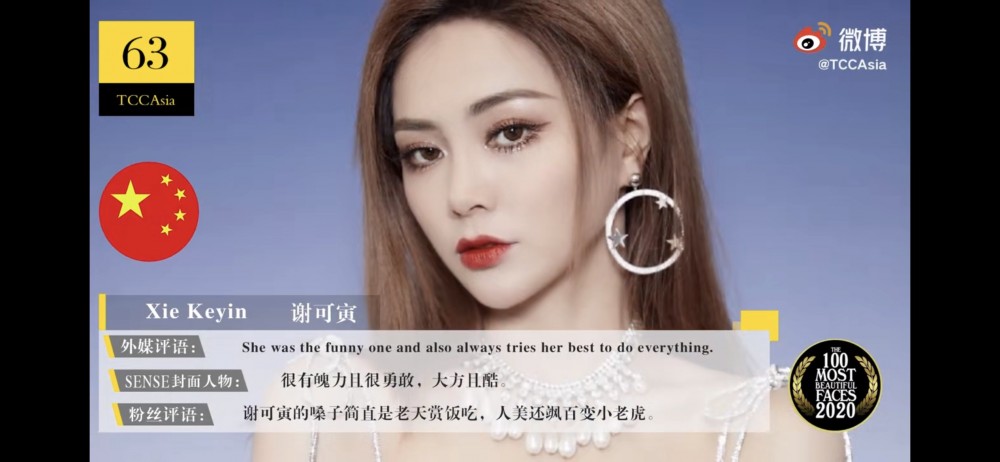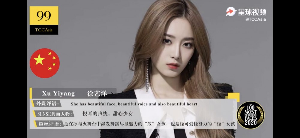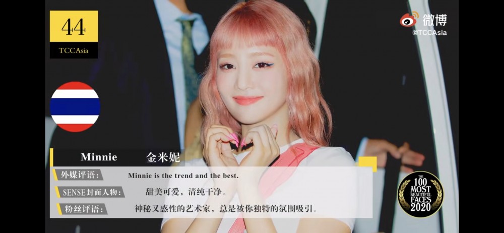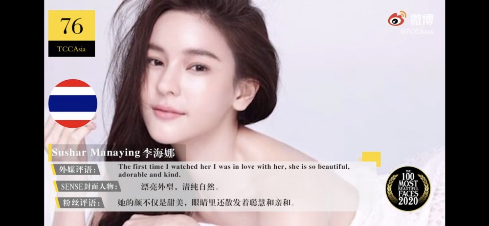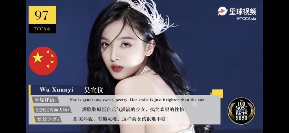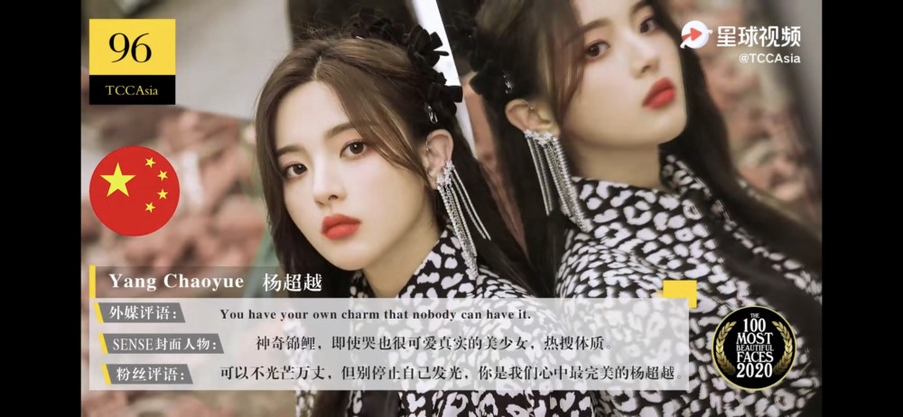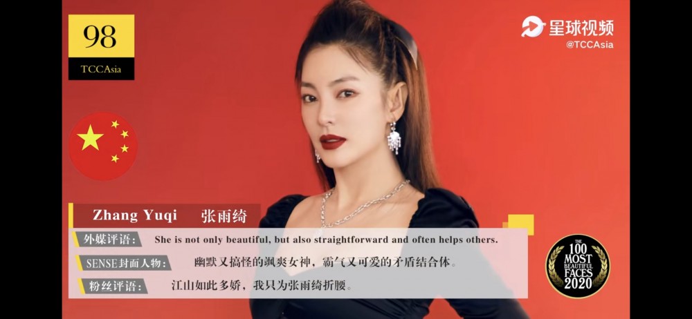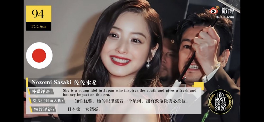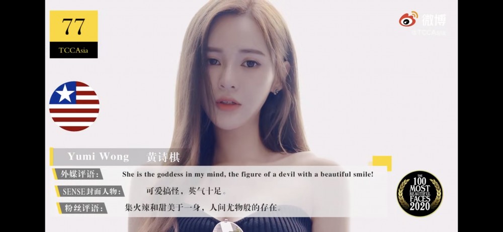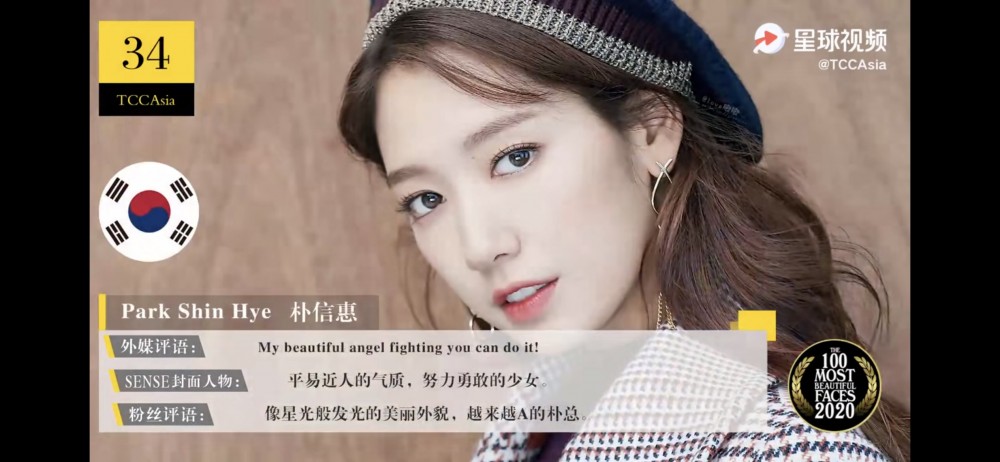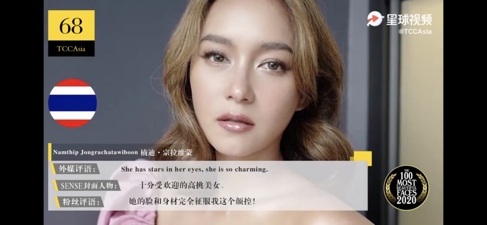 第 100 位:泰國女星平采娜;第 94 位:日本女星佐佐木希;第 93 位:蔡依林;第 89 位:木村光希;第 88 位:李聖經;第 87 位:新垣結衣;第 72 位:(G)I-DLE 成員葉舒華;第 71 位:歐陽娜娜;第 70 位:宣美;第 66 位:泫雅;第 51 位:劉心悠。
