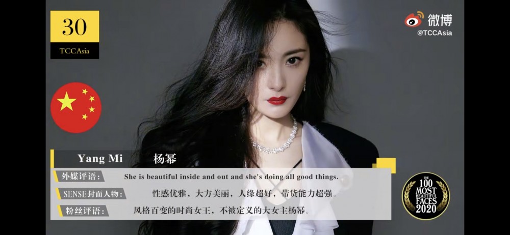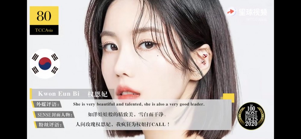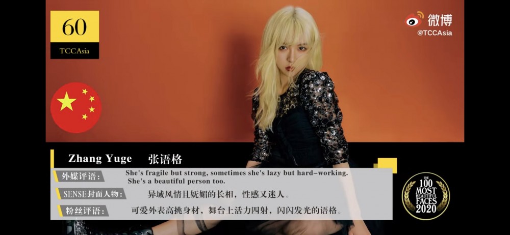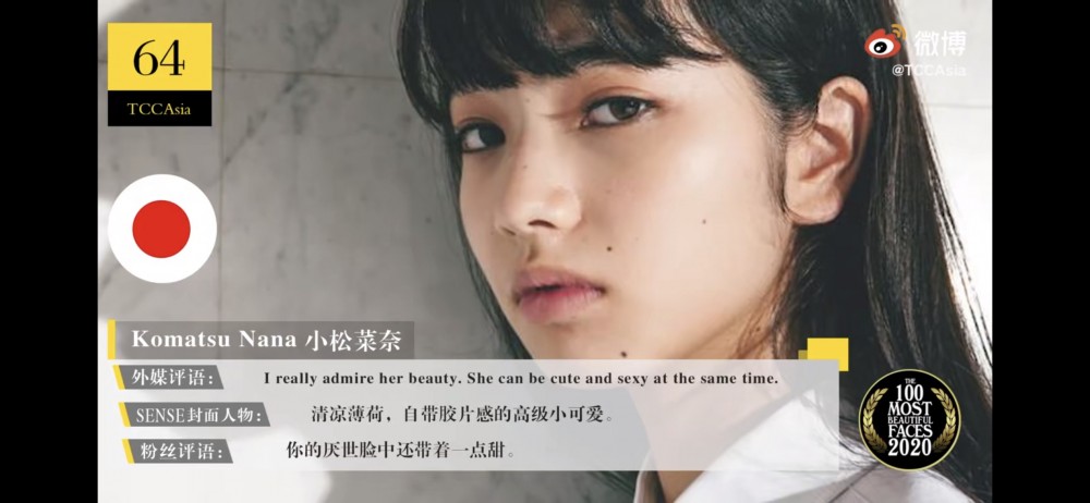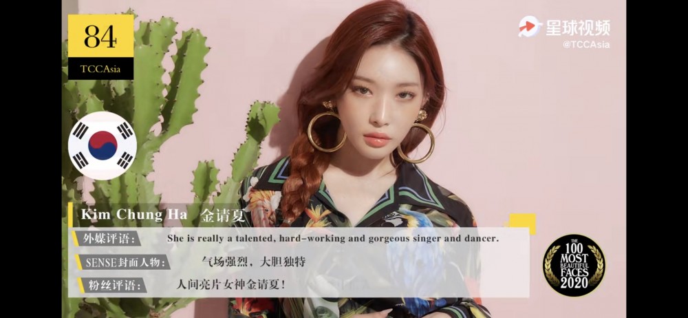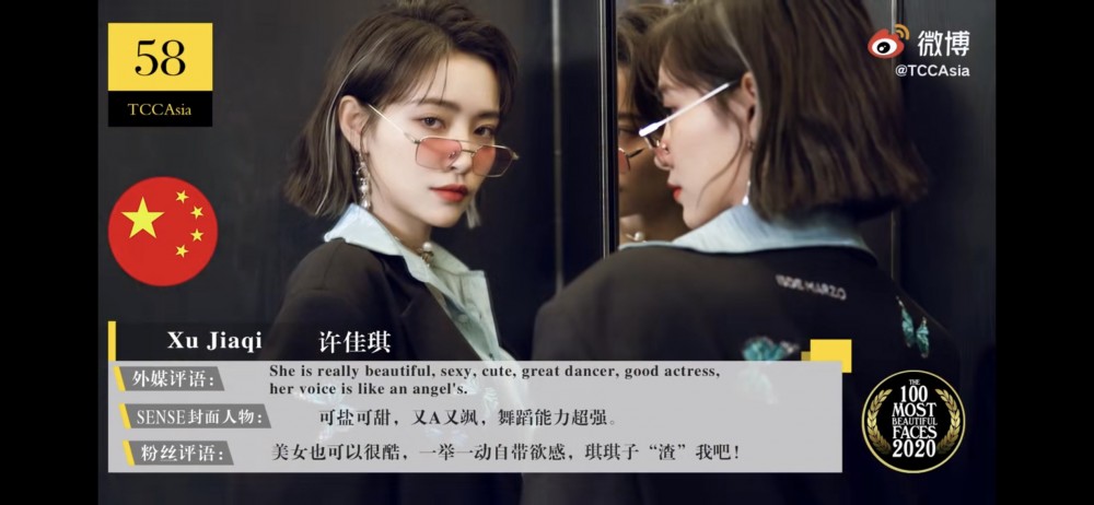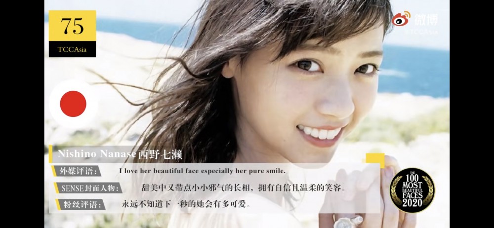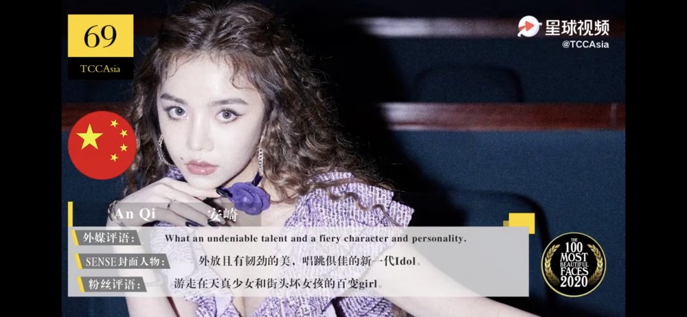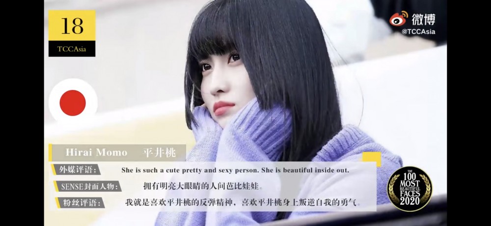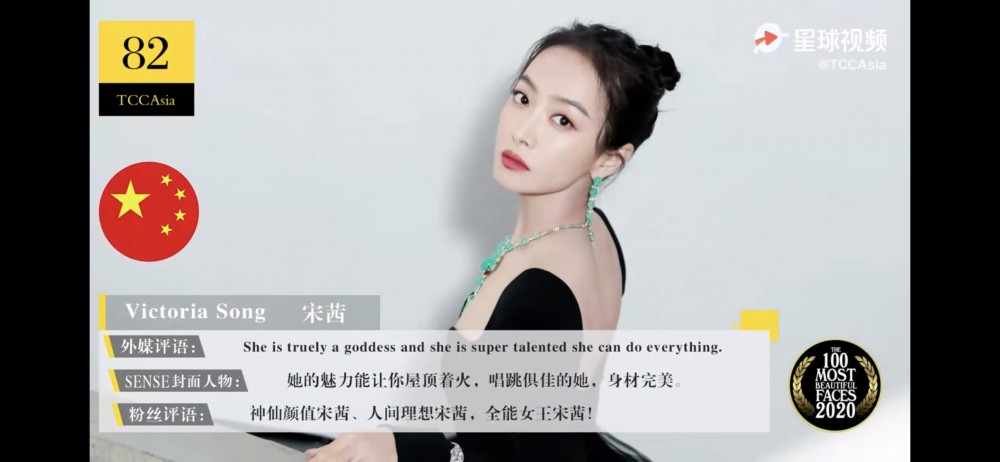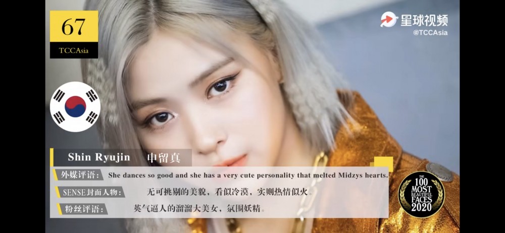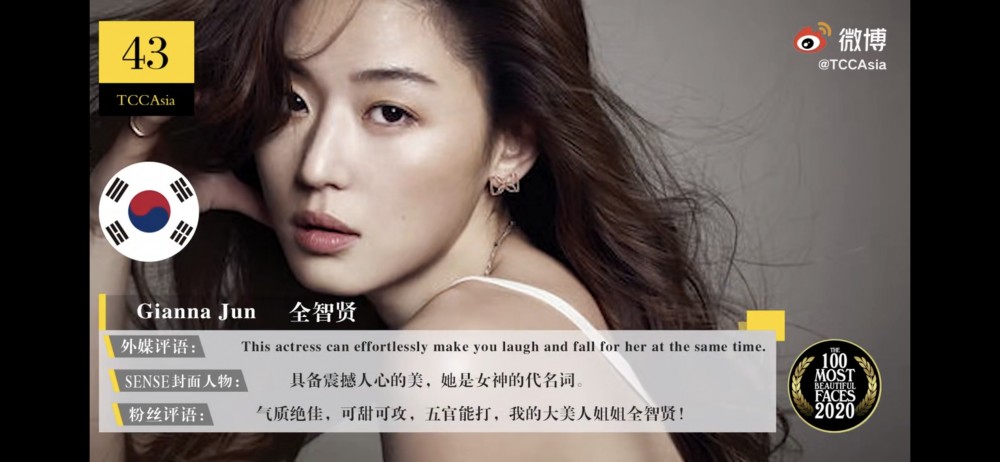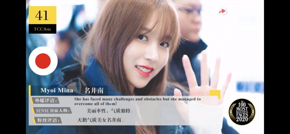 第 100 位:泰國女星平采娜;第 94 位:日本女星佐佐木希;第 93 位:蔡依林;第 89 位:木村光希;第 88 位:李聖經;第 87 位:新垣結衣;第 72 位:(G)I-DLE 成員葉舒華;第 71 位:歐陽娜娜;第 70 位:宣美;第 66 位:泫雅;第 51 位:劉心悠。