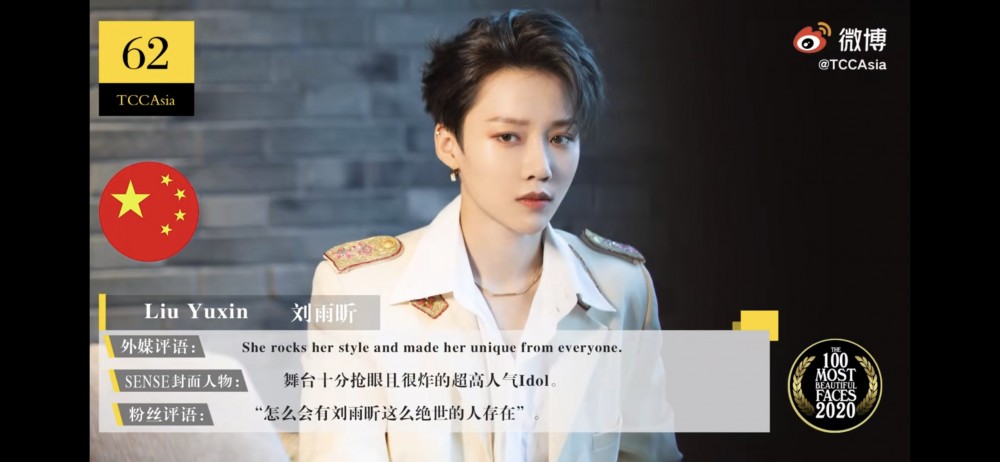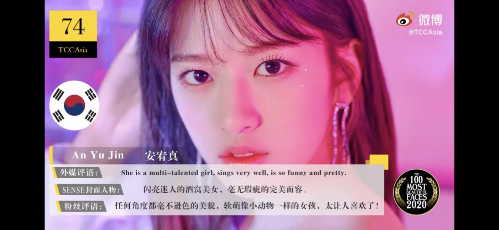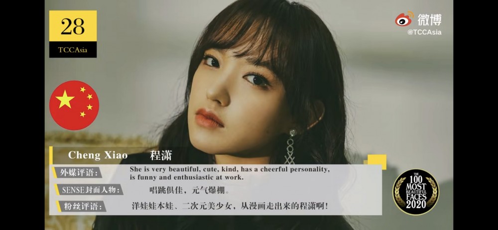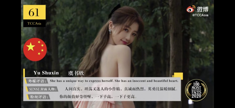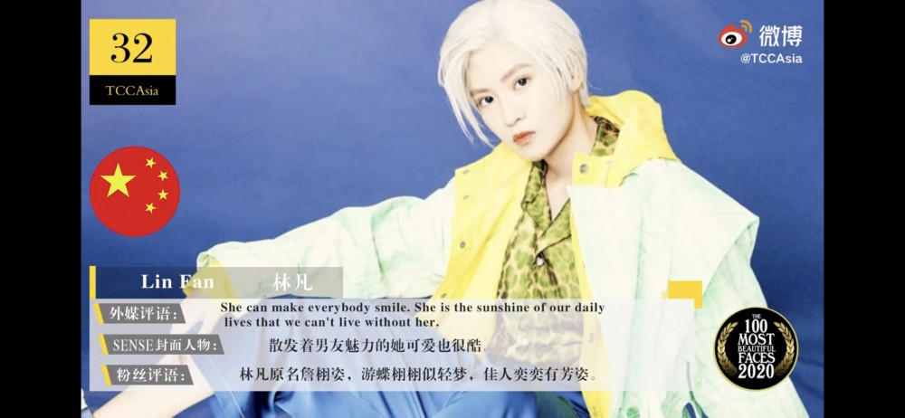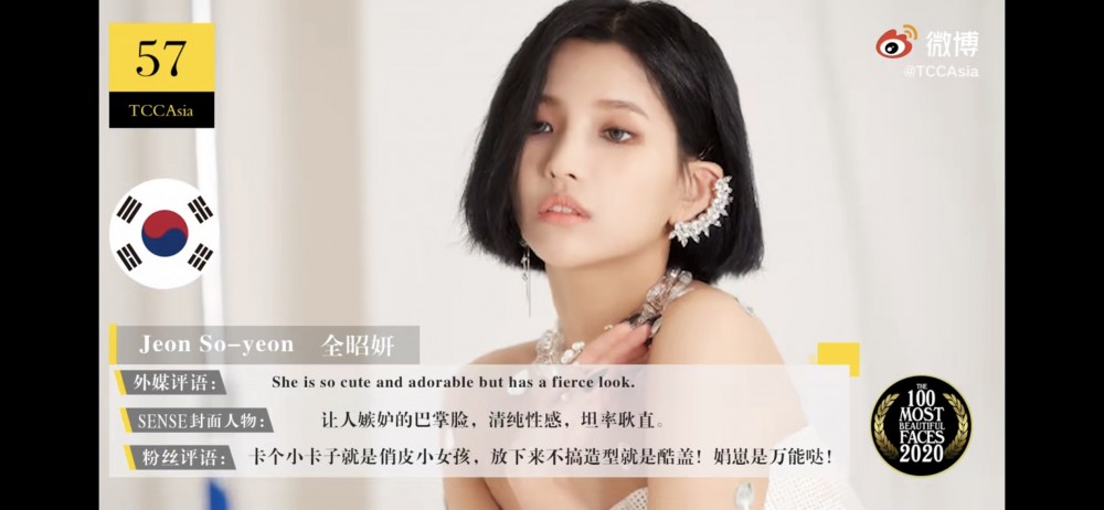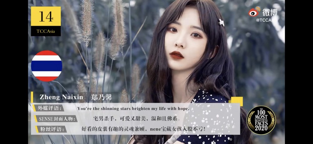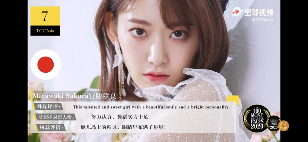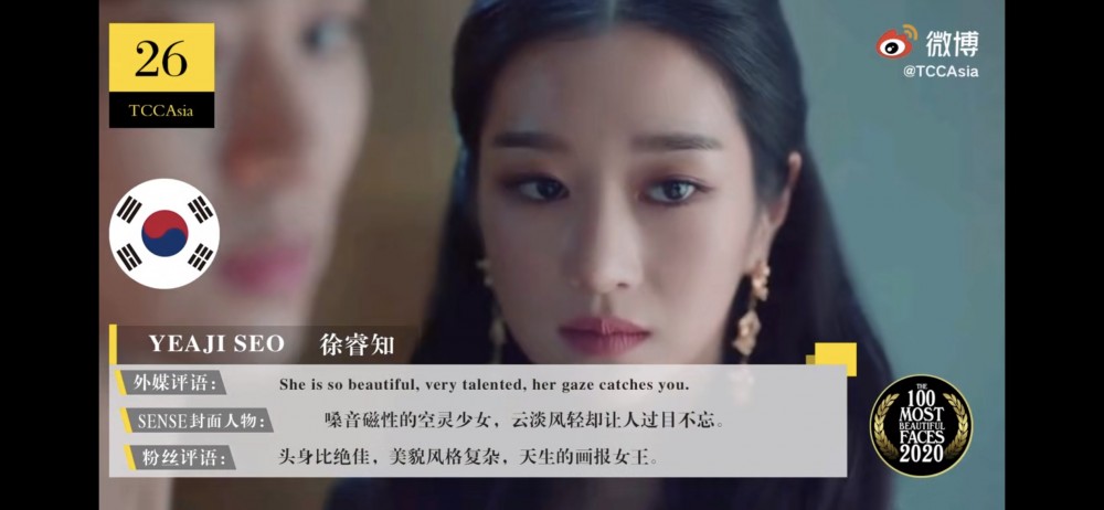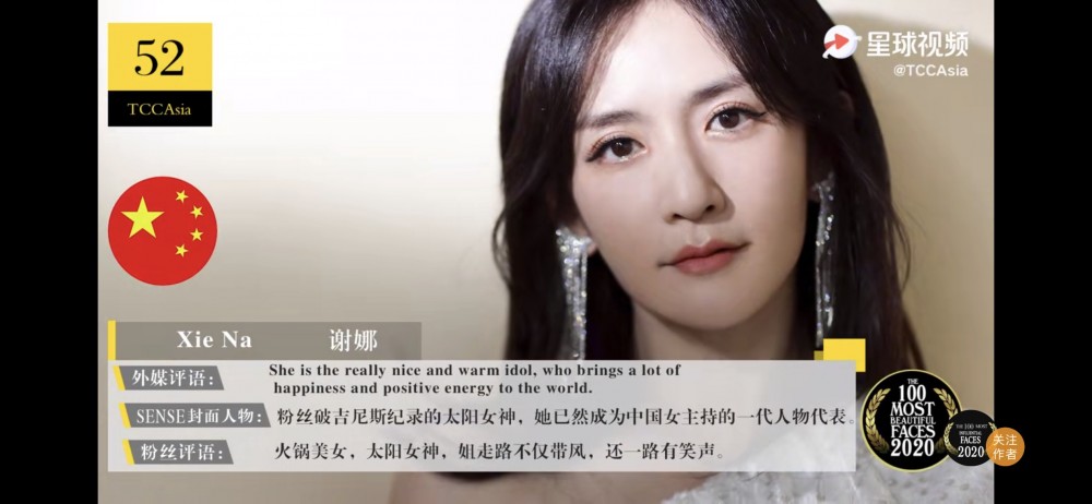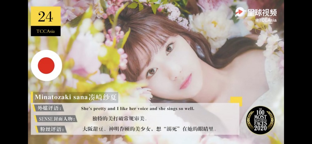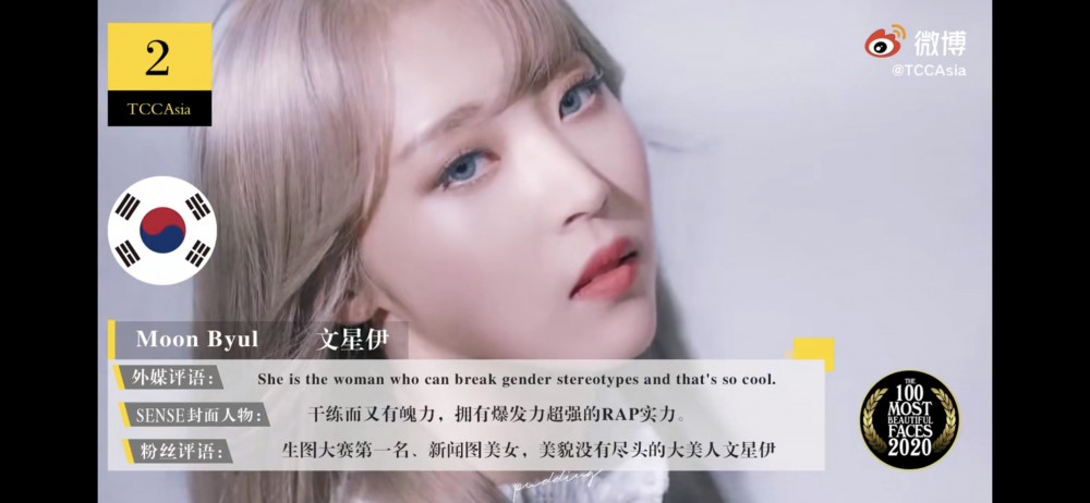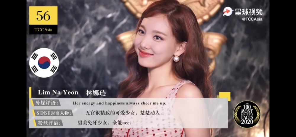 第 100 位:泰國女星平采娜;第 94 位:日本女星佐佐木希;第 93 位:蔡依林;第 89 位:木村光希;第 88 位:李聖經;第 87 位:新垣結衣;第 72 位:(G)I-DLE 成員葉舒華;第 71 位:歐陽娜娜;第 70 位:宣美;第 66 位:泫雅;第 51 位:劉心悠。