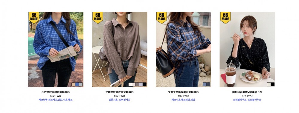 66 girls 係韓國品牌,不過佢有台灣網站,所以唔識韓文都可以買到衫,而買嘅衫都會喺韓國直接寄出。