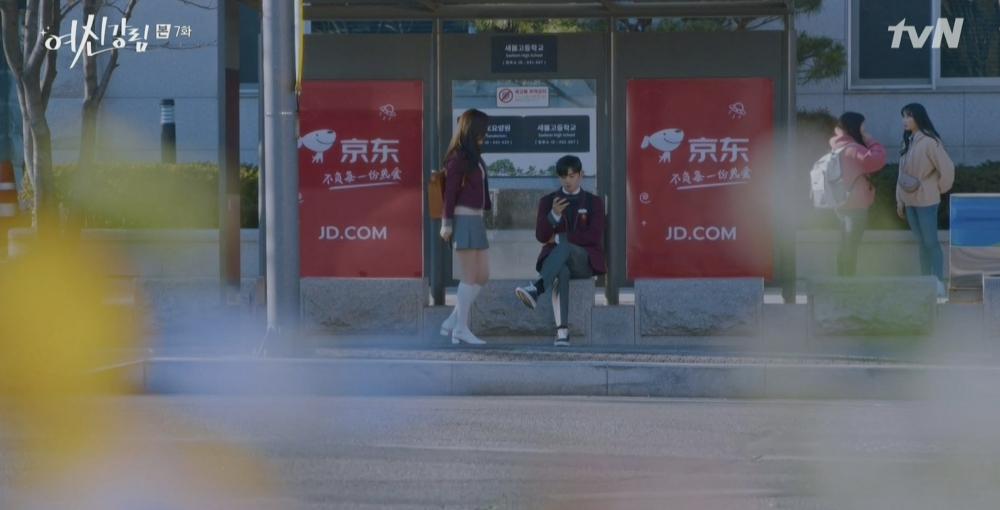而喺近日播出嘅第 7 集中,男女主角車銀優及文佳煐喺巴士站等車嘅時候,身後嘅廣告竟然又係中國網購站嘅廣告。