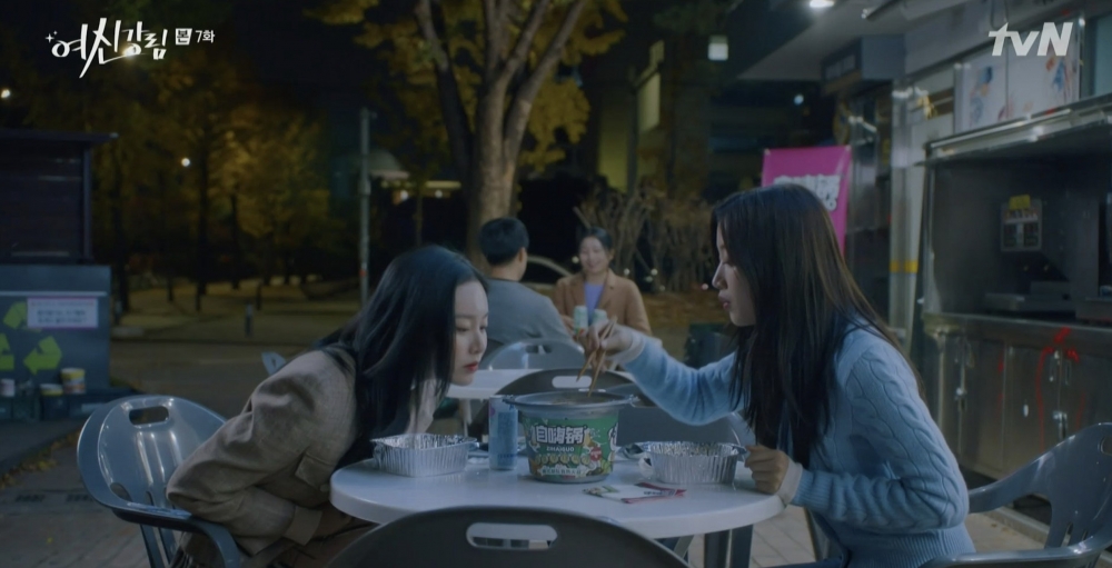 除咗網購網站,連食物都有植入式廣告。第 7 集中,文佳煐同朴柔娜喺便利店度食嘢,但竟然係食大陸嘅自熱火鍋!