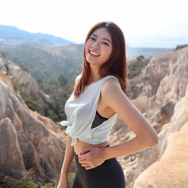 相中游嘉欣身穿白色緊身上衣運動服裝,露出白滑玉背加小蠻腰,好性感呀~