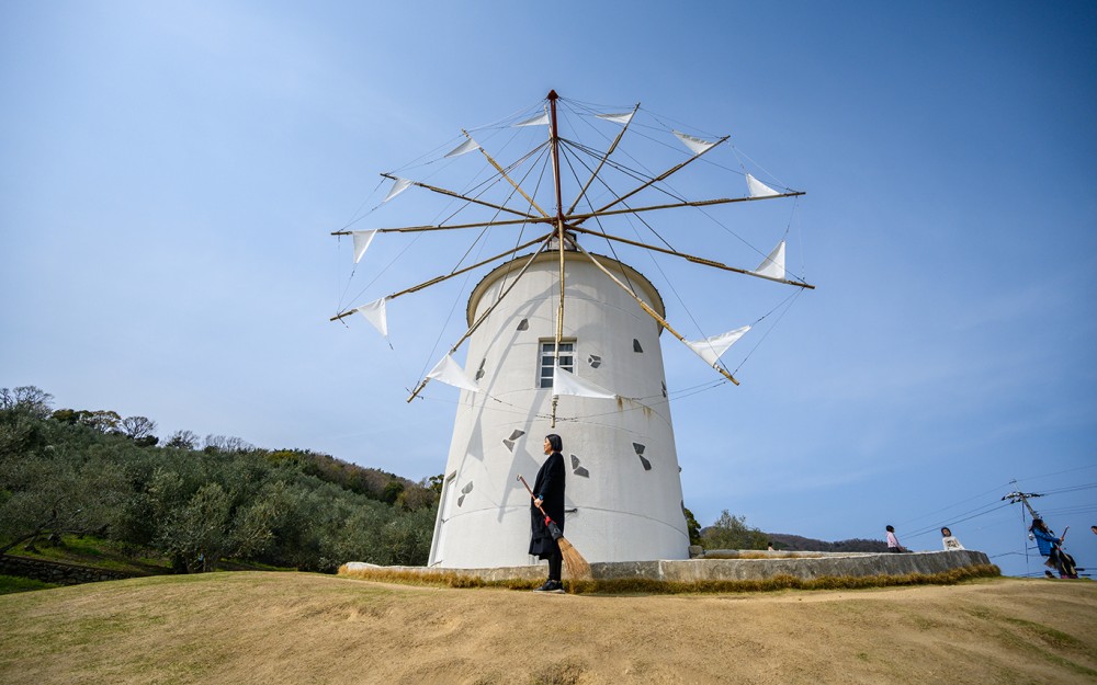 宮崎駿迷必去嘅小豆島橄欖公園,呢度係電影《魔女宅急便》嘅取景地。企喺山坡上望出去,一面無際嘅天藍色海平面就係非常有名嘅瀨戶內海,加埋岸邊嘅希臘風車,不知不覺間,你就成為咗電影主角啦!