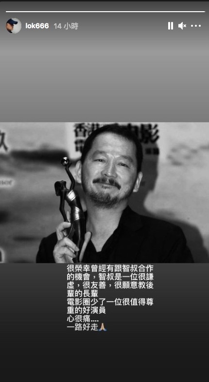 電影《無間道II》拍檔余文樂則喺 IG story 上傳智叔嘅相悼念並寫上:「很榮幸曾經有跟智叔合作的機會,智叔是一位很謙虛,很友善,很願意教後輩的長輩,電影圈少了一位很值得尊重的好演員,心很痛...」