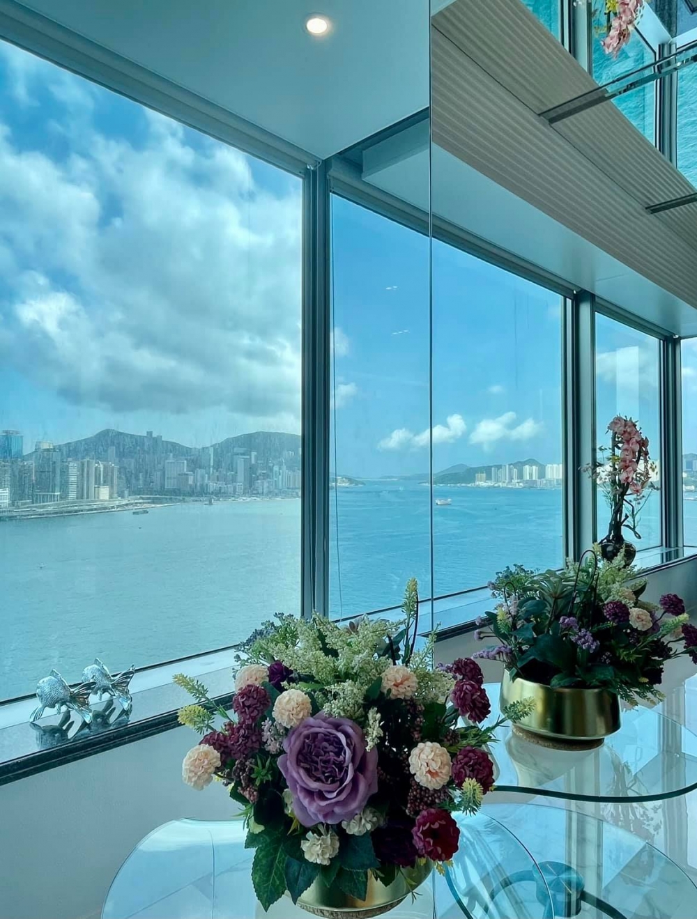 日前陳曼娜嘅好友就送咗一啲花畀佢,佢影上facebook時就曝光咗豪宅內部。客廳一排落地玻璃可以飽覽無敵維景海景,採光又好。