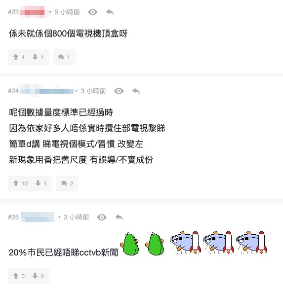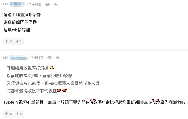 不過TVB公佈嘅收視率,即使喺網上口碑不佳嘅節目仍有高收視,有網友認為係「龍門任佢搬」:「TVB都幾好嘢,公我贏字你輸」,又指電視直播只係「慣性收視」:「係未就係個800個電視機頂盒呀」。