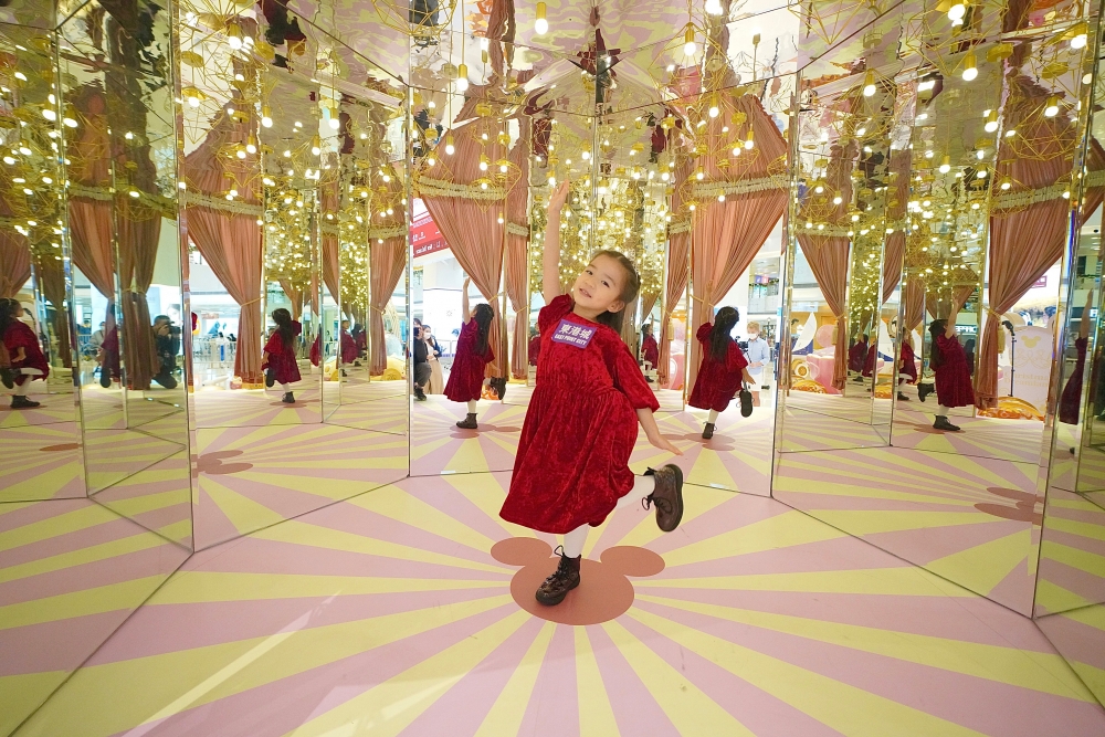 除咗一架架公主水晶車,仲有超過5米高嘅「夢幻光影打卡堡壘」打卡位,巨型米奇標誌式大耳朵,行入堡壘,會發現激閃巨型鑽石閃閃發光,仲可以喺鏡房內隨意影出零死角嘅公主相,透過光影交錯,影出嚟嘅相,特別充滿迷幻仙氣㗎!