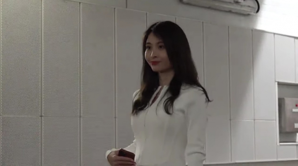著上紅裙嘅佳麗叫Atlia,一開口就係半鹹淡廣東話,佢從以充滿自信嘅步伐行上前影相。Atlia嘴角銷魂癦相當吸睛!