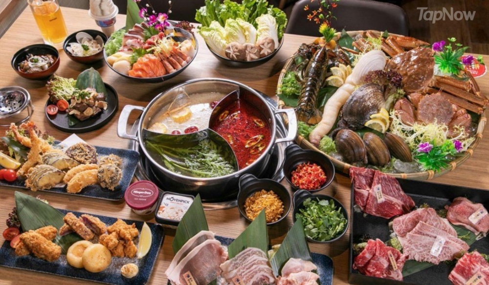 店內提供超過150品火鍋配料,包括多款任食日本和牛、刺身、即炸天婦羅等,可以根據個人口味同預算選擇肉類組合,包括美國牛小排、澳洲牛板腱、日本國產牛、特選牛舌、日本熊本市A5和牛等。