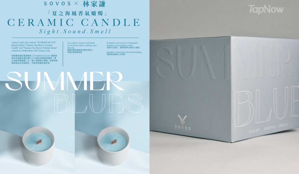 林家謙是次演唱會主題為《SUMMER BLUES》,今次聯乘本地香薰治療品牌SOVOS推出「夏之海風香氣蠟燭」及「夏之海風香水噴霧」,由香味挑選到產品包裝同設計,家謙bb都有全程參與!配合SOVOS專業調香團隊全程協助指導,調配出兩種香氣,聽住家謙嘅歌用絕對係五感嘅享受,超治癒!