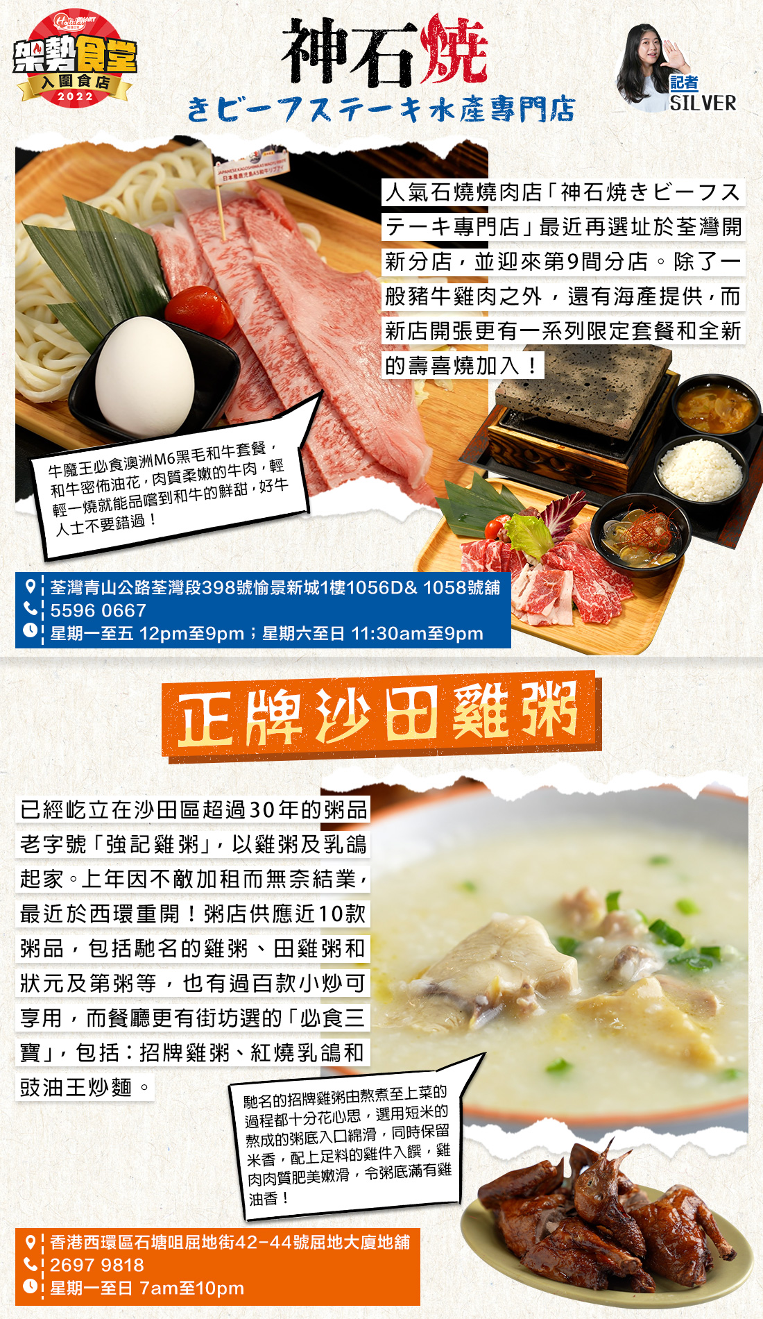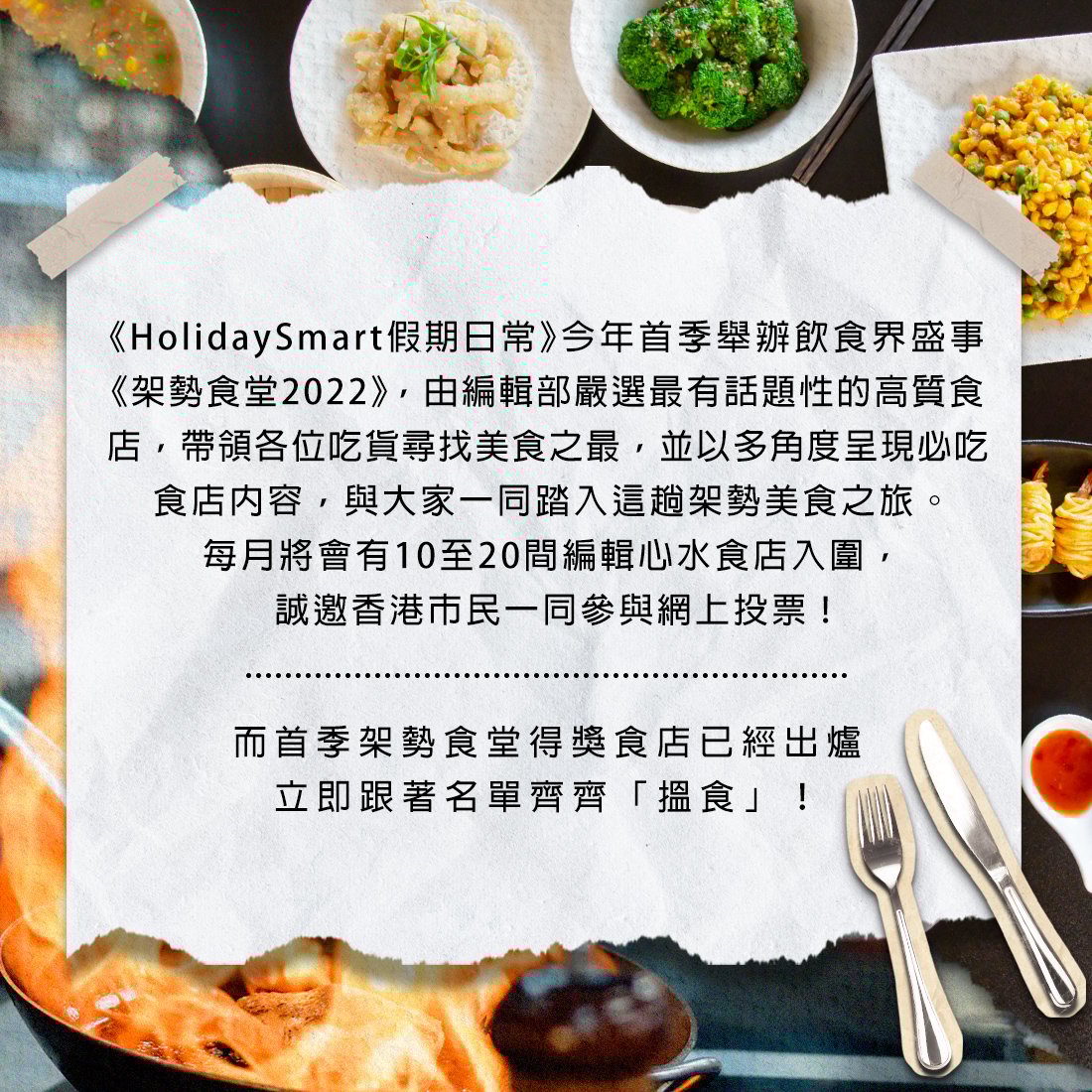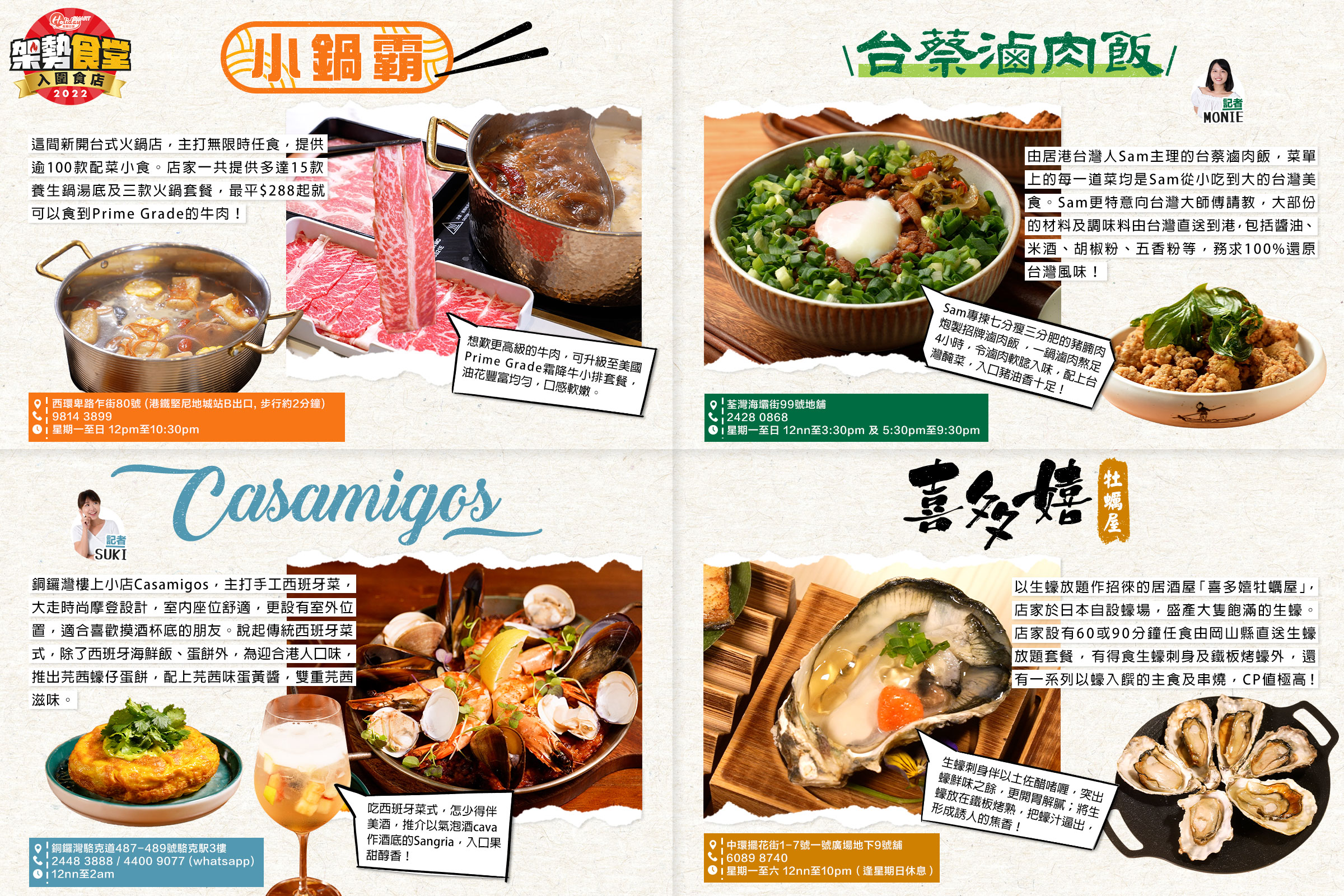 【架勢食堂2022】《假期日常》第二季飲食大獎!入圍+得獎食店名單出爐 #架勢食堂2022 By Suki on 02 Feb 2023 Deputy Managing Editor 只想有個餵唔飽嘅肚,有杯飲唔完嘅酒,一個不完美的飲食記者。 快速連結:得獎食店名單 | 12月入圍名單 | 11月入圍名單 | 10月入圍名單 得獎食店名單 12月入圍名單 11月入圍名單 10月入圍名單 【想隨時隨地緊貼本地食買玩資訊?】👉🏻 立即下載 HolidaySmart 假期日常APP👉🏻 即刻Follow我地Instagram holidaysmart.hk👉🏻 訂閱我地 Youtube Channel 標籤: #架勢食堂2022