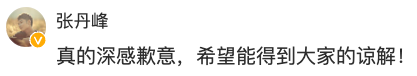 然而,13日後,洪欣又喺微博貼出一封致歉信,表示離婚一事係「一些由於夫妻間的家務矛盾而引發的情緒化言論」,仲幫老公澄清冇出軌畢瀅:「我們之間的矛盾都與畢瀅無關,只是我們相處中夫妻會面臨的一些問題」,而張丹峰亦喺留言區指:「真的深感歉意,希望能得到大家的諒解!」有關事件引起熱烈迴響,唔少網民感到不滿,批評洪欣:「你沒救了」、「可憐之人必有可恨之處」、「你真的覺得,你們合體,就能賺錢?」、「不想再看笑話了」,更直斥洪欣行為係「戀愛腦」。