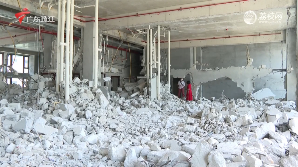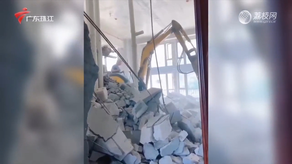 據內媒報道,日前,內地廣東肇興四會市一位業主大手筆購入一座大樓二樓全部42個單位並進行改裝,計劃將全部牆打通後,裝修成娛樂場所。影片中,現場多面牆體已被打通,多條柱被截斷,鋼筋都裸露出嚟,據了解,涉事2層面積約1,800平方米,當時拆除面積已達三分之一。為咗方便2樓嘅裝修建築運輸,施工人員更直接打穿1樓嘅天花板。更令人震驚嘅係,為提升拆牆進度,工人甚至將挖掘機吊上2樓施工。