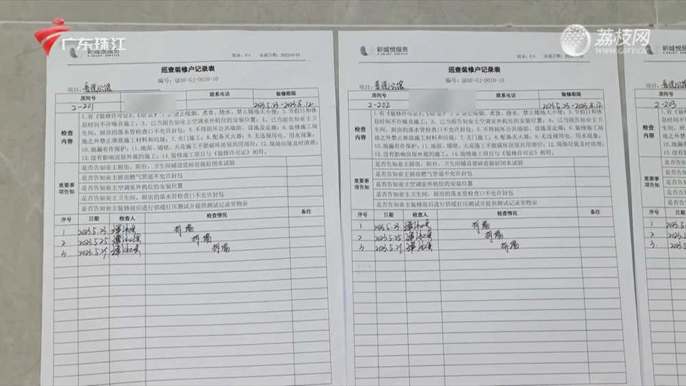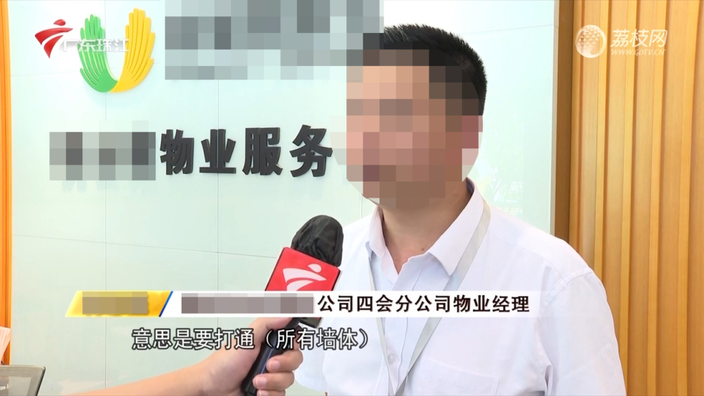 涉事物業服務公司經理回應記者提問時指:「(有人)嚟物業中心溝通過,意思話要打通晒(所有牆),當時我哋唔知道個機器(挖掘機)上去,佢同我講係人工拆除。」問到物業管理有冇發現業主用埋挖掘機上2樓,該名經理指:「呢個係我哋疏忽管理冇見到。」不過記者喺2樓電梯處見到裝修方案,3日嘅裝修都有物業管理嘅巡查記錄。面對記者質疑,物管表示當初曾要求2樓業主提供施工許可證:「應該要由業主去報備住建部門嘅施工許可證,所以當時我已經要求業主要提供呢份表,但到現時為止,佢都仲走緊流程。」