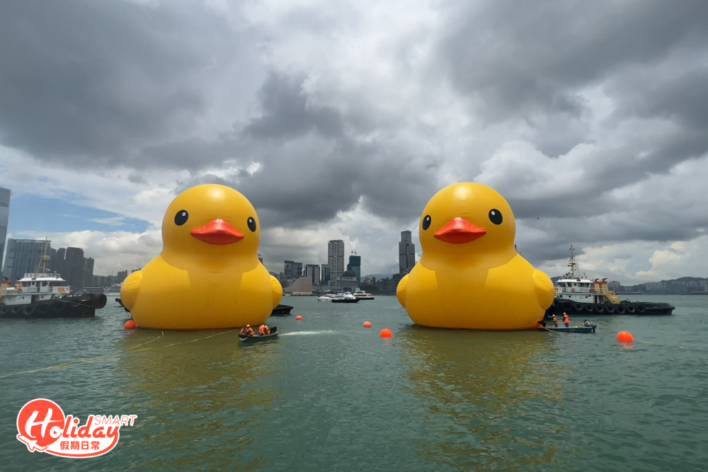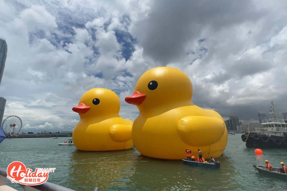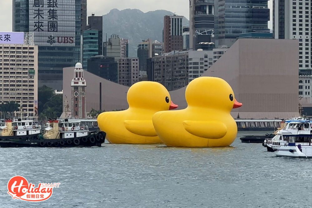 早前看到巨型黃鴨試水都已經十分期待,今次黃色鴨仔更帶來同伴雙雙現身於中環海濱長廊!由明天起將展出約兩星期,並視乎天氣情況而定。