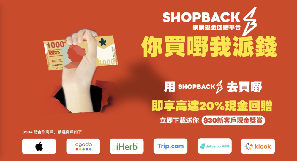現時ShopBack聯同超過 350間商戶合作,當中包括旅行、外賣平台、美妝及家電百貨等商戶,只要網上網物時透過ShopBack去消費,就可以賺高達20%嘅現金回贈,而且回贈更加無上限!重點所獲得的現金回贈仲可以真金白銀過戶到銀行戶口,想點使就點使!而且登記嘅過程仲非常簡單,只需要Download ShopBack App登記成為新客戶,輸入專屬邀請碼「 HS30」,即可獲$30現金獎賞!