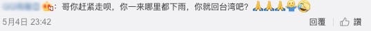 當然除咗一班廣州嘅網民搞笑咁希望佢盡快離開外,近月正缺水嘅台灣,有網友就叫佢快啲回去「你就回台灣吧????」、「快回來臺灣 臺灣中南部 需要你」