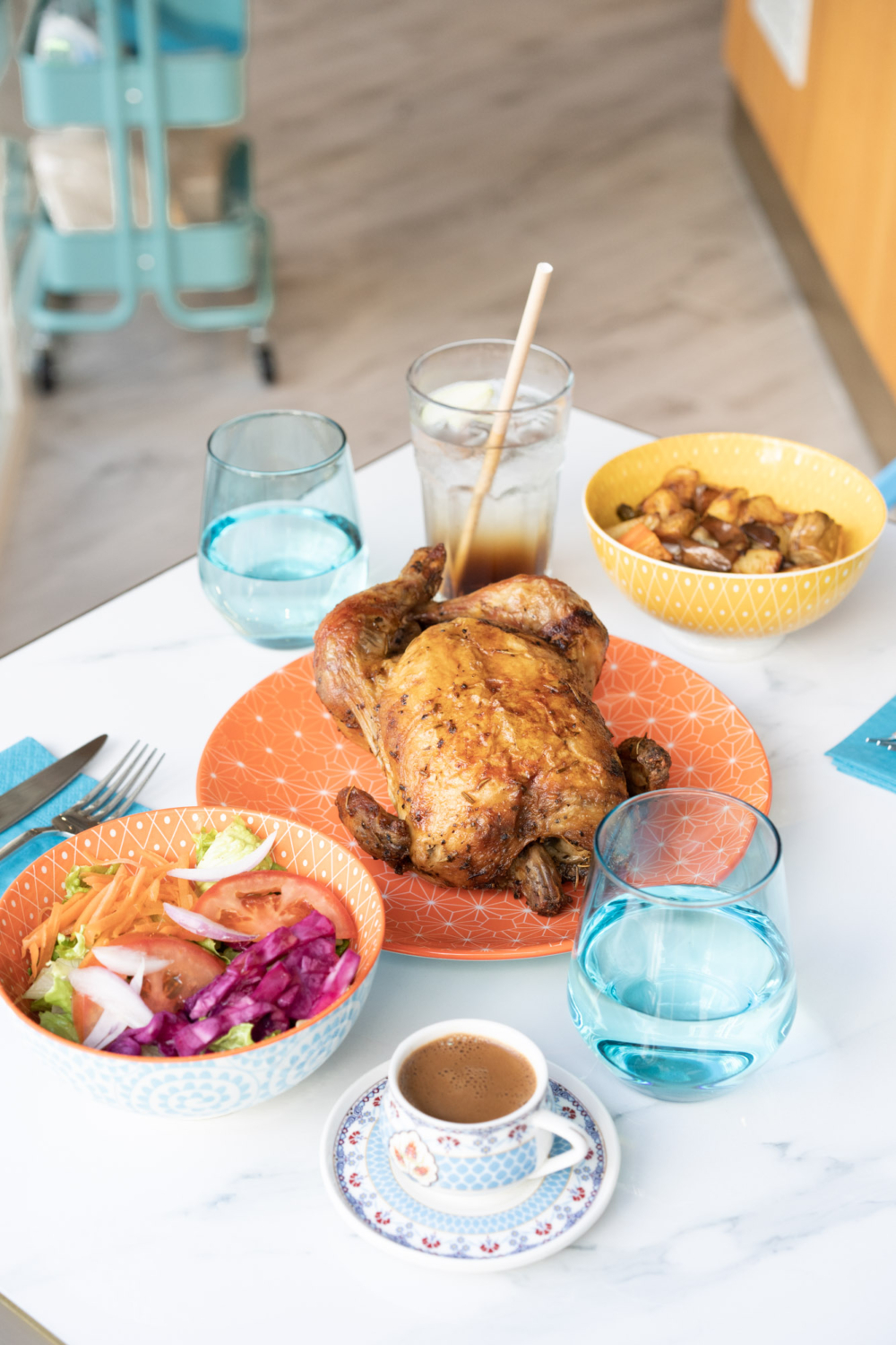 Pet-Friendly的Picnic ,半室外露天座位可供狗狗入座,員工們都對狗狗非常熱情。藍白色小白屋的裝修配上牆身希臘小島街角風景的壁畫,彷如置身希臘一樣,老闆及大部份員工均是土耳其人,雖然主打地中海菜式,但偏向土耳其的風味,其獨特炮製的烤雞雞皮鬆軟酥脆,加上濃郁的肉汁,令人回味無窮。