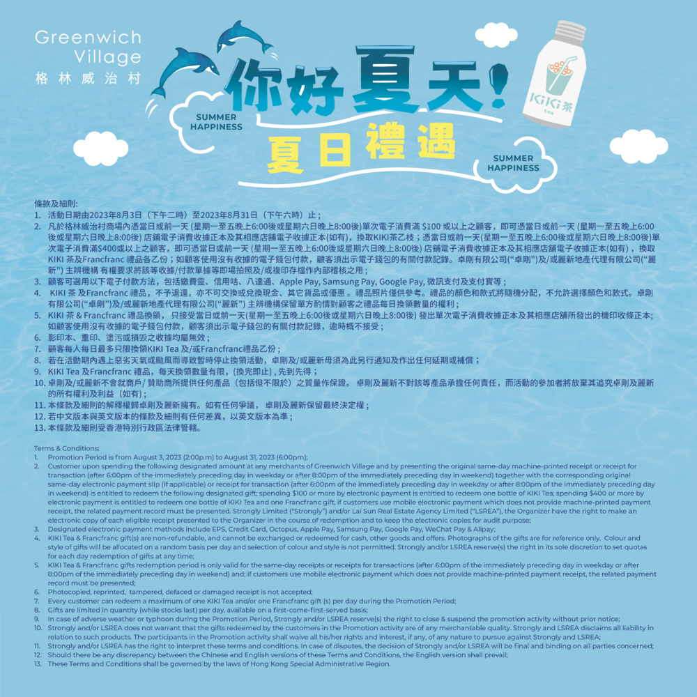 Facebook: https://www.facebook.com/Greenwichvillage.hkg/