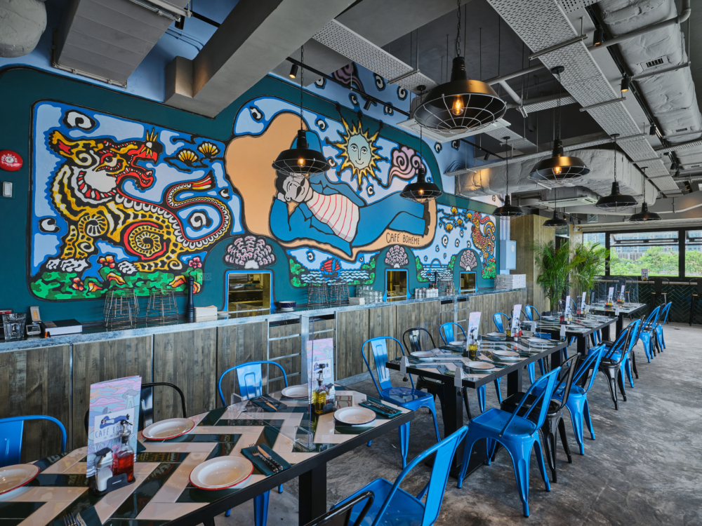 Café Bohème於香港有 2間分店,走半露天開放式設計,有室內和戶外座位主打手工意大利Pizza,而且價格親民,Pizza 大大個,味道濃郁,牛扒質素好高。餐廳面向跨灣大橋,是打卡必到的地方。