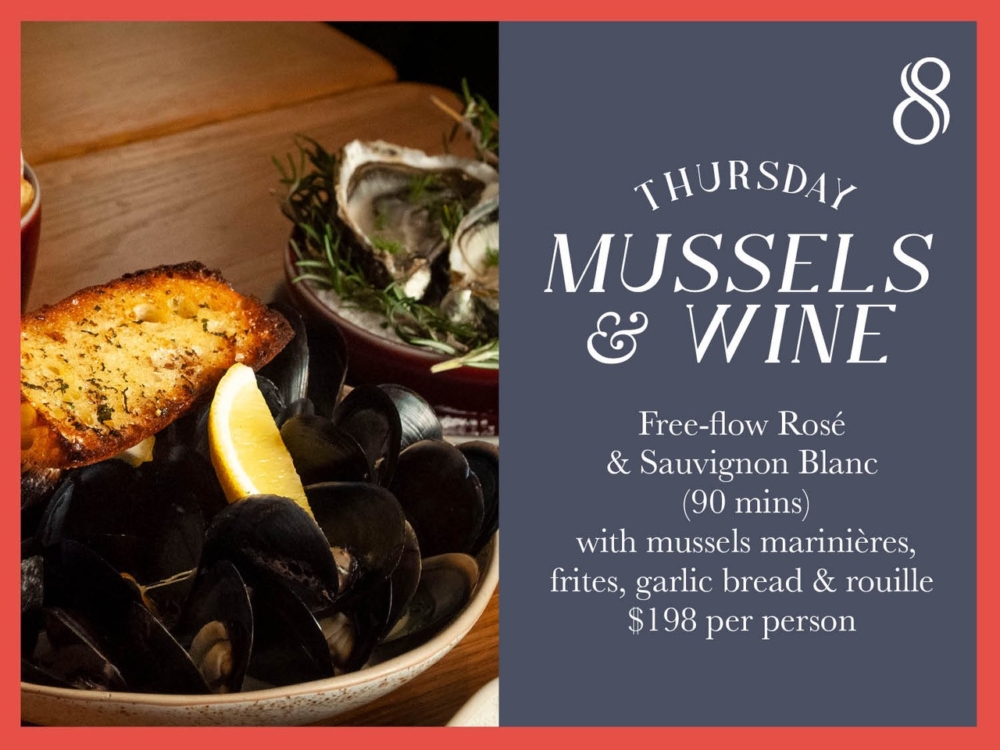 District 8 主打經典法式菜餚(例如:烤牛扒配薯條、焗法國蝸牛、白酒燴青口和法式精緻甜點等)。務求打造舒適用餐氛圍,享受配搭特色雞尾酒、優雅葡萄酒、滋味佐酒小食及透心涼自家製雪糕,自選每日精選口味的雪糕味道,新鮮雪糕全以澳洲牛奶自家製成,絕對是家人朋友放鬆身心的不二之選。