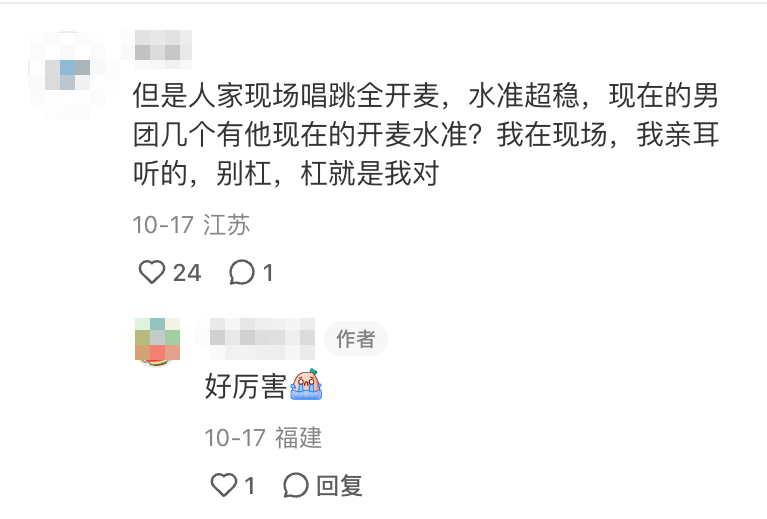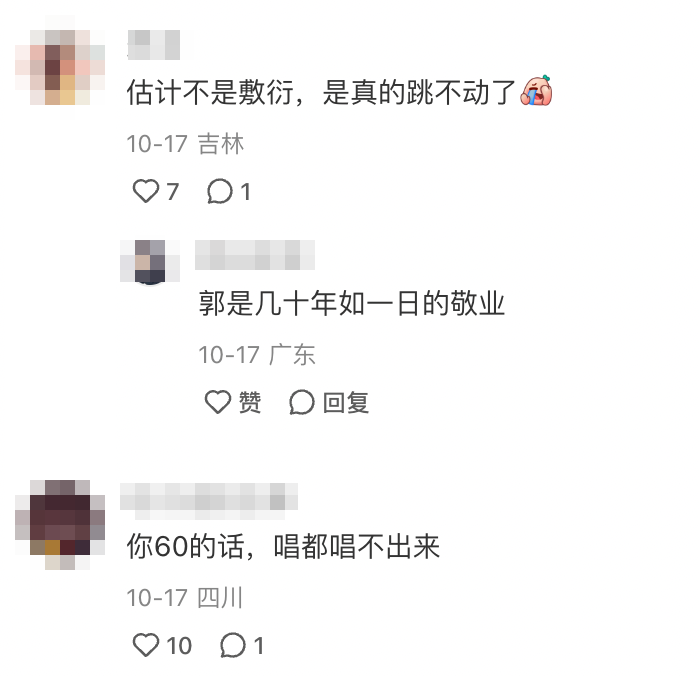 但同時亦有網友留言力撐偶像,批評網友過分苛刻,並認為以郭富城這個年紀仍然真跳真唱已經盡力了,提到:「一群躺平的年輕人在嘲笑努力的年過半百的······」、「這個年紀,能接受,感覺已經盡力了」、「但是人家現場唱跳全開麥,水準超穩,現在的男團幾個有他現在的開麥水準?」、「怎麼樣都比現在的小鮮肉跳得認真賣力!」