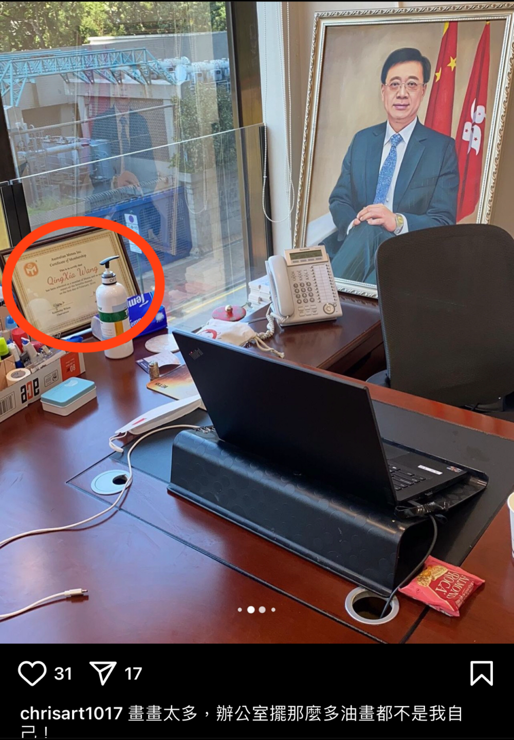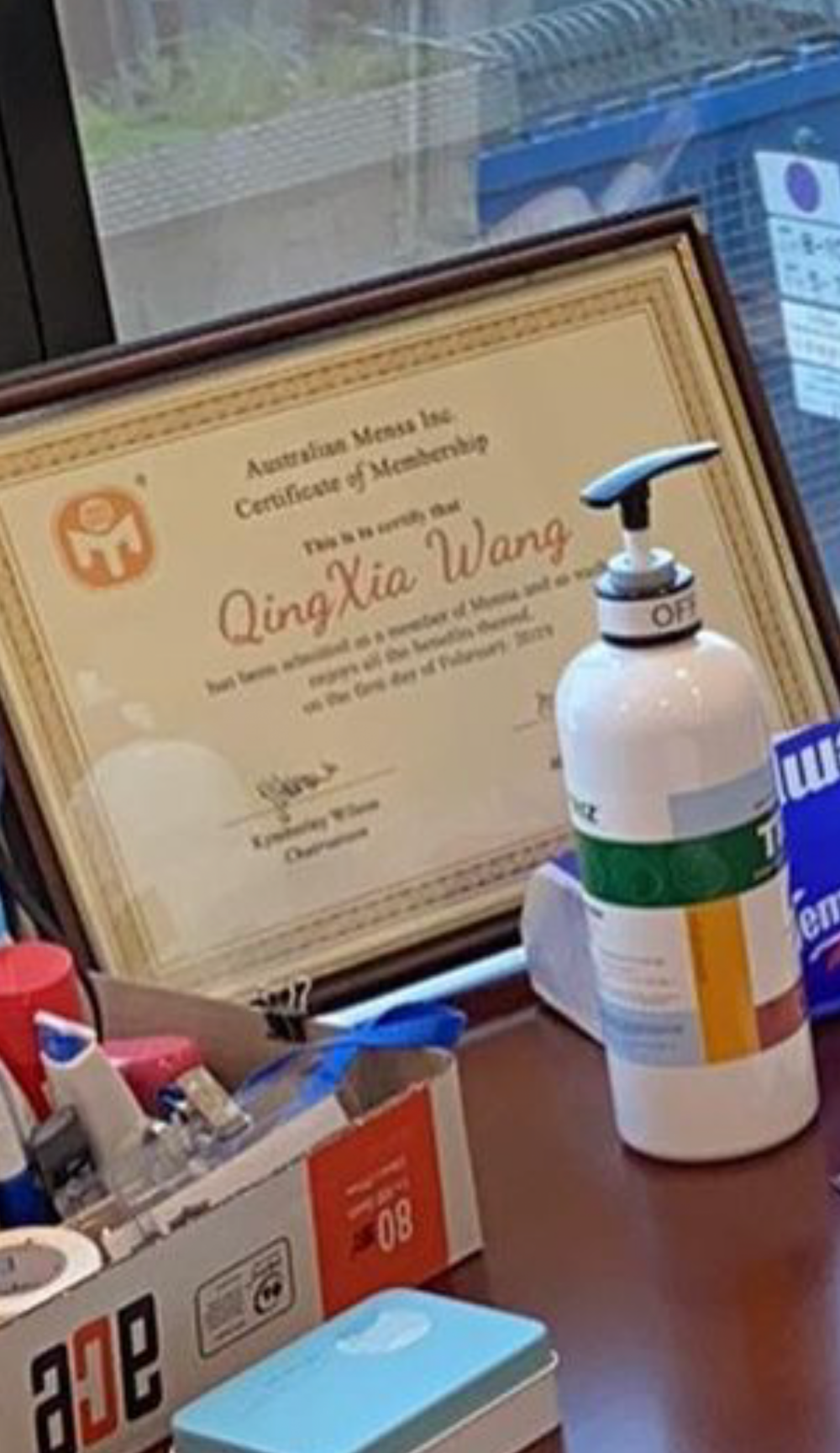 另外Chris自稱智商超過180,是門薩會員:「智商低過180,無得入Mensa」,但其實霍金和愛因斯坦的智商也是160分,智商180已達人類最高水平。她之前曾分享辦公室相片,桌上也有疑似澳洲門薩的證書,但又被指與真正證書的字體有出入。