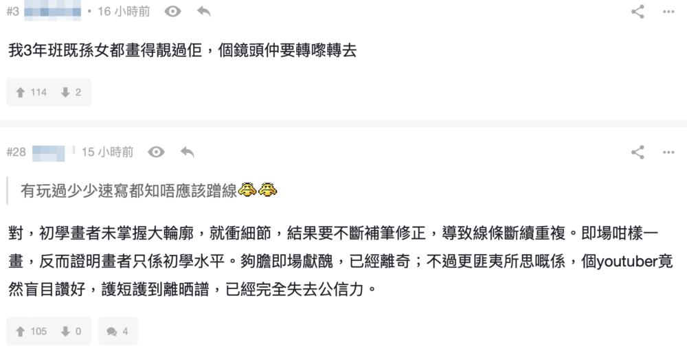 直播中Chris更即席畫畫,但她畫的主持人卻被指:「證明咗佢真係唔識畫畫」、「有玩過少少速寫都知唔應該蹭線」、「即場咁樣一畫,反而證明畫者只係初學水平」