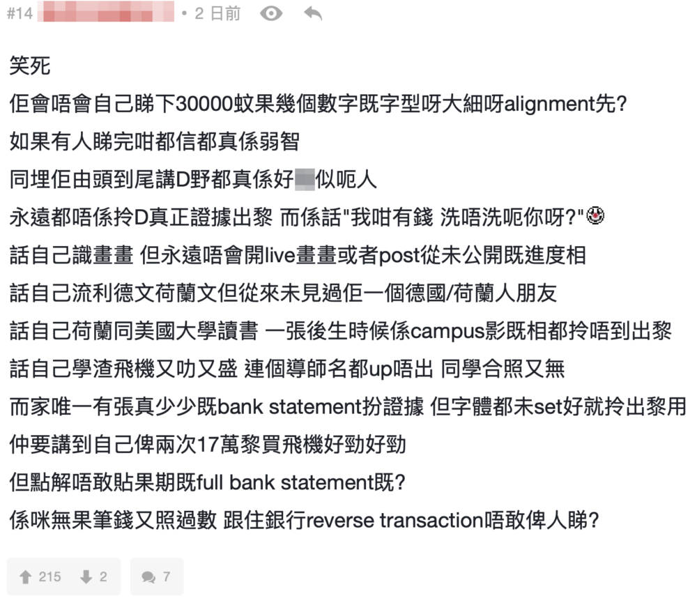 Chris更公開銀行交易紀錄,顯示她已還清債務,但有網民質疑她公開的交易紀錄中,唯獨3萬美金的數字字體比其他字體小,疑似「做手腳」。