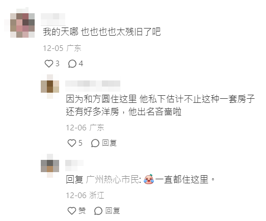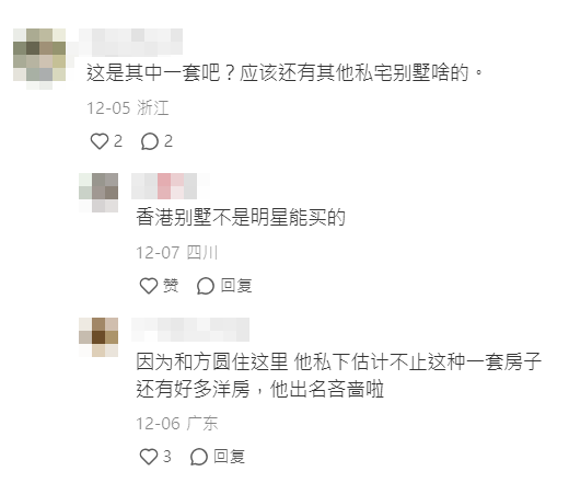帖文一出豪宅的外觀馬上引起網友關注,有網友嫌棄道:「為甚麼一個富豪要住這種」、「我的天哪,也也也也太殘舊了吧」、「這外觀可必翻修維護下」、「要重新裝修」。更有人直指郭富城性格吝啬,因此估計私下不只這一套豪宅,大坑豪宅只是和方媛一家四口與外父外母的住宅。