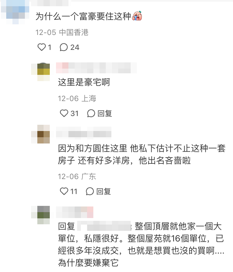 不過亦有不少人代郭富城反駁,稱:「這才是香港的豪宅」、「 你猜他還有沒其他房產?郭富城那麼有錢只有一間套房?」、「整個頂層就他家一個大單位,私隱很好。整個屋苑就16個單位,已經很多年沒成交,也就是想買也沒的買啊....為甚麼要嫌棄它」?